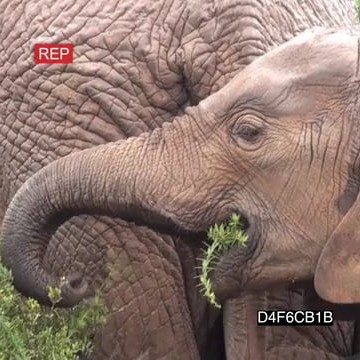 African elephants with calfs feeding off thorny bushes in rainy weather conditions