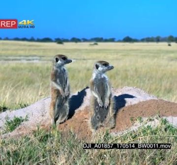 A pair a male and female meerkats communicating to each other