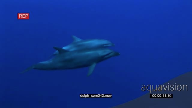 Indo-Pacific Bottlenose Dolphins swimming slowly underwater and passing by camera.