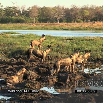 A pack of wild dogs watching out for prey in the Okavango Delta