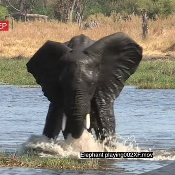 Young bull splashing and playing in water in the Okavango Delta