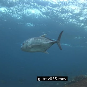 Giant Kingfish swimming underwater in ocean MLS PAN LWS HAND