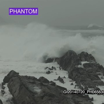 Big waves rolling in over rocks Overcast rain conditions PHANTOM