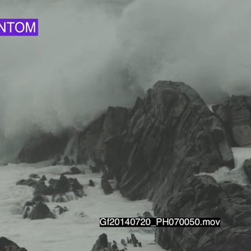 Big waves rolling in over rocks Overcast rain conditions PHANTOM