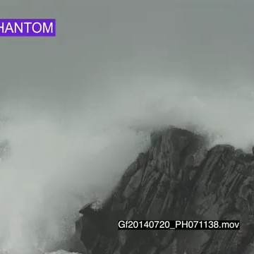 Big waves rolling in over rocks Overcast rain conditions PHANTOM