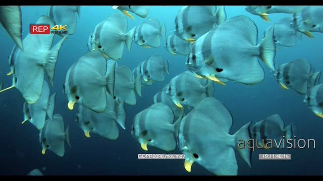 Close up shot of a large school of longfin batfish (spadefish), platax teira