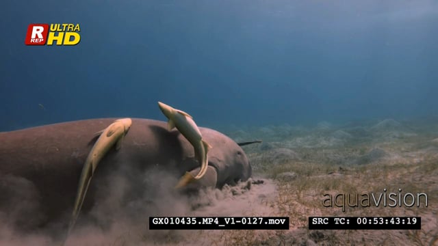 Close up shot of a dugong eating