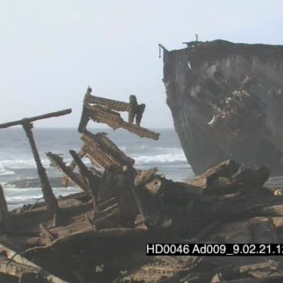 Shipwreck on ocean beachfront