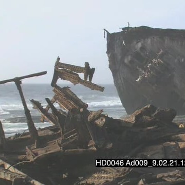 Shipwreck remains on beachfront rocks