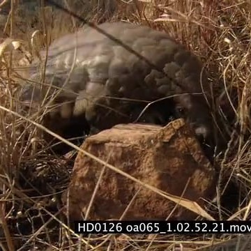 Pangolin walking around dry grass searching for ants and termites for feeding