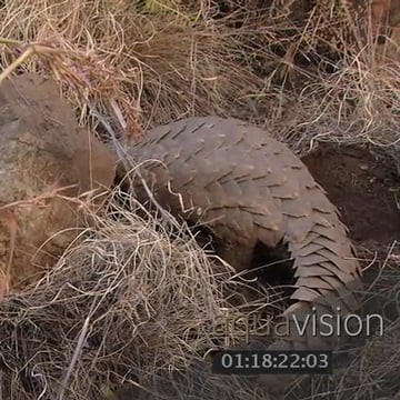 Pangolin feeding on ants and termites under a rock