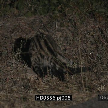 Civet walking around sniffing foraging for food at night