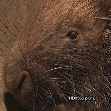 Pan from Cape porcupine’s face to quills in burrow at NIGHT CU PAN