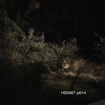 Cape Porcupine foraging scouting around going into burrow at NIGHT