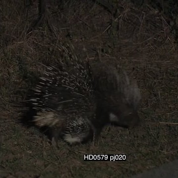 Cape Porcupine mother followed by porcupette foraging at NIGHT