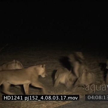Lion surrounded by aggressive lionesses fighting at night, lionesses walking in dry bushveld MS MWS