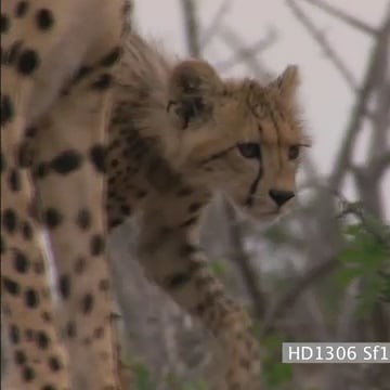 Young Cheetah cub walking past other cubs and mother standing seems to be hunting