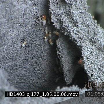 Termites crawling on dry mud nest MS