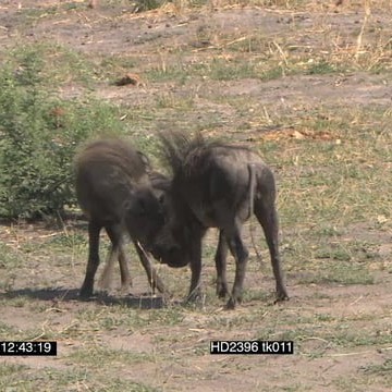 Warthogs graze, joust, dominance display WS