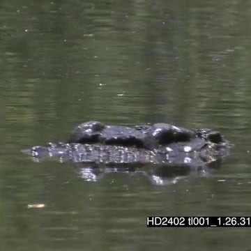 Nile Crocodile walks into water swims away submerging in water hunting