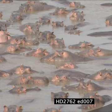 Large Hippo pod social behaviour resting in Luangwa River LS PAN