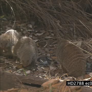 Banded Mongeese walking searching and looking around on bushveld MLS MS ZI ZO PAN