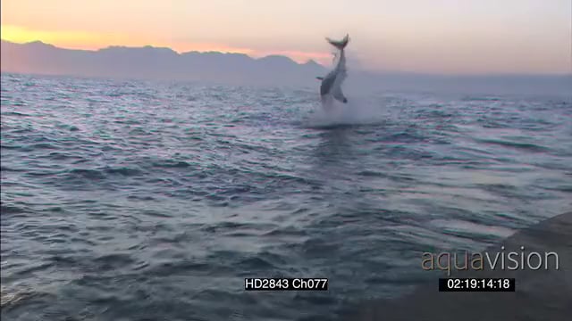 Great White Shark (Carcharodon carcharias), breach water and take seal decoy WS AW