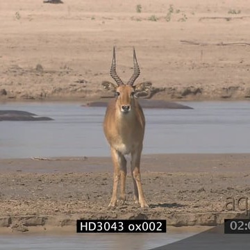 Puku standing moving on island in Luangwa river and Hippo pod resting in river WS PAN ZI LS SHAKY