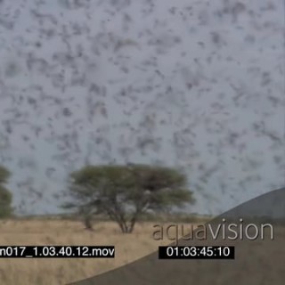 Swarm of Locusts flying around in frame bushes in BG FOCUS PULL XCU CU PAN