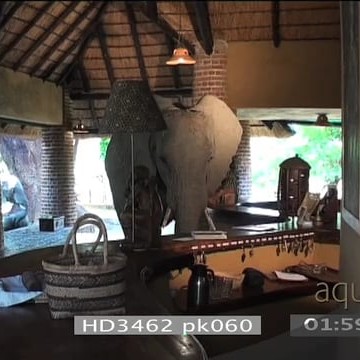 African elephant investigating reception desk Mfuwe lodge HANDHELD