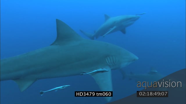 Zambezi Bull sharks [2] swimming around UW HAND MURKY