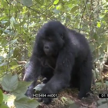 Mountain Gorilla family with young feeding and GENERAL SOCIAL behaviour, young very playful AmCam