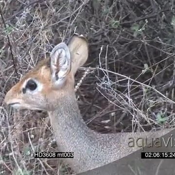 Dikdik standing looking alarmed AmCam