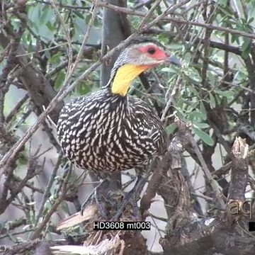 Francolin bird in tree the Jumps off CU GENERAL BEHAVIOUR
