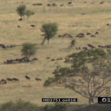 Sequence of Blue Wildebeest herd walking grazing and migrating in the Serengeti WS XWS PAN ZO