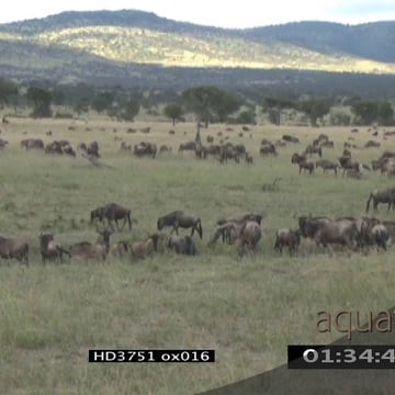 Sequence of Blue Wildebeest herd standing grazing and migrating in the Serengeti XWS PAN