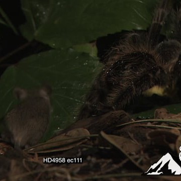 Goliath Bird-eating Spider hunting a Pygmy Sand Mouse walking around the forest