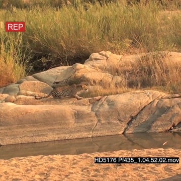 Leopard stalk attack Water Monitor on rocks jumping into water NO TAKEDOWN MS ZI MCU