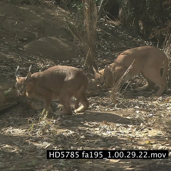Caracals cautiously investigating sniffing tortoise retreated inside shell Defensive behaviour