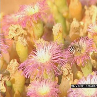 African honeybee foraging for pollen in flowers LS