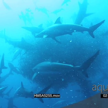 Blacktip Shark feeding and attacking Sardine bait ball UW WS HAND