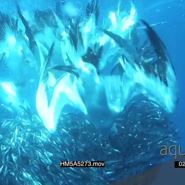 Cape Gannets diving into Sardines bait ball feeding UW LS HAND