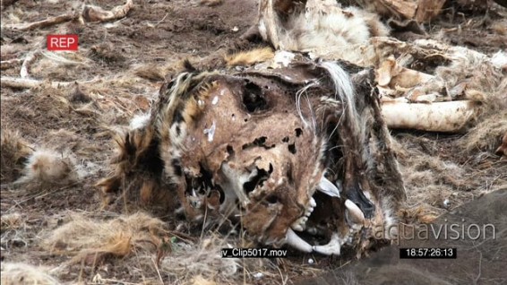 Endangered Tiger carcass bones after being poached