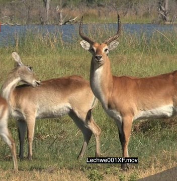 Herd of Red Lechwe standing and looking around MWS