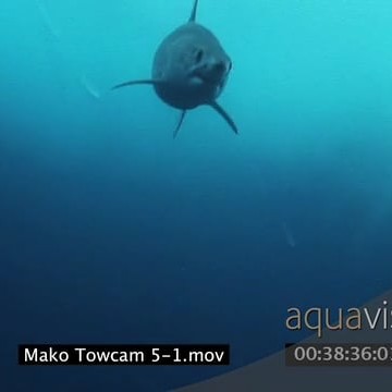 Mako Shark swimming underwater in ocean following camera MLS TRAVELING SHOT WS