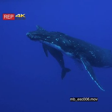 Humpback whale mother with young calf swimming up to the surface UW SOCIAL BEHAVIOUR