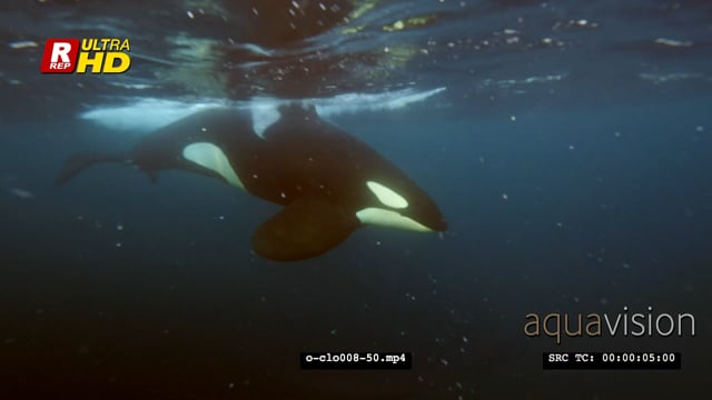 Close-up Orca Killer Whale hunting herring in noway CU UW