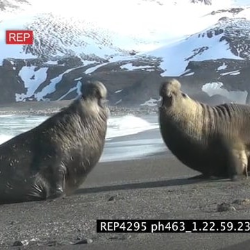 Vicious Elephant Seal battle. A huge 5-ton bull Southern Elephant Seal challenges and attempts to take ownership of the beach from the dominant male