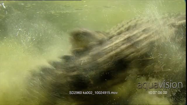 Intimidation behaviour of two adult Nile Crocodiles aggressive and fight each other.