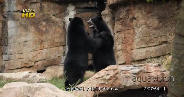 Two adult Black bears fighting, intimidation behaviour.